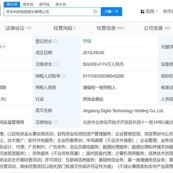 天眼查App显示,近日,京东科技控股股份有限公司发生工商变更,注册资本由约53.9亿人民币减至约50.2亿人民币。